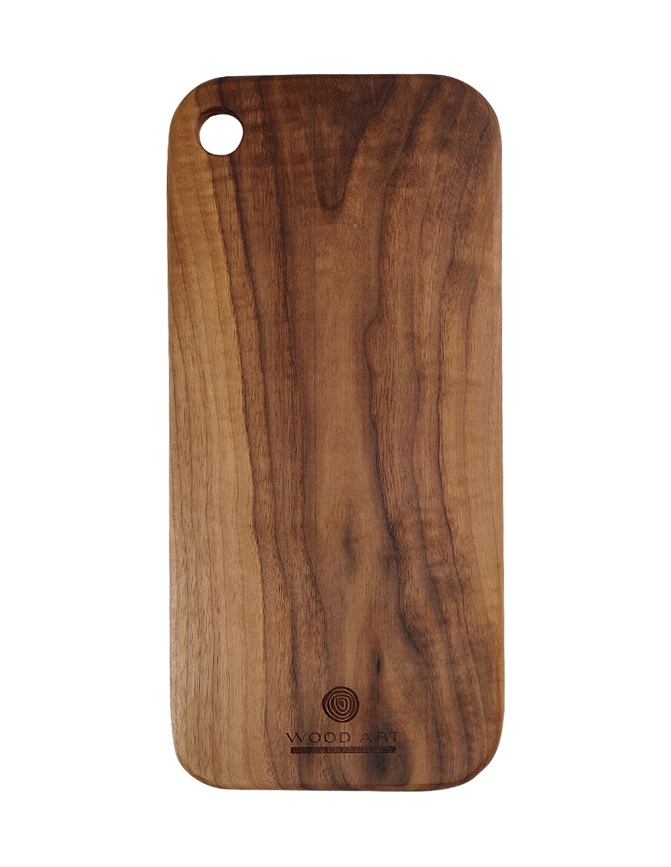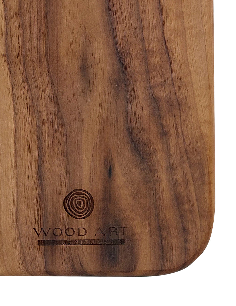 Esta elegante tabla está hecha a mano con madera de nogal, considerada una madera preciosa por su tono obscuro, durabilidad, dureza y belleza. Su diseño alargado es perfecto para preparar grandes cantidades de alimentos o usarla como superficie principal en la cocina.