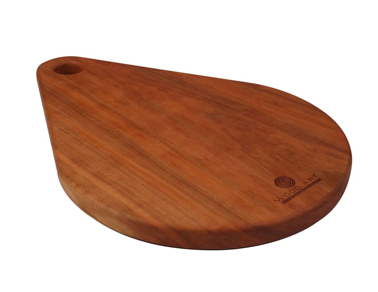 Diseñada con una forma orgánica y elegante, esta tabla en forma de gota es una pieza única hecha a mano con la calidez del cerezo. Un elemento funcional y decorativo a la vez.