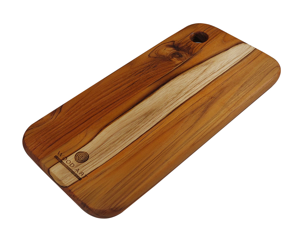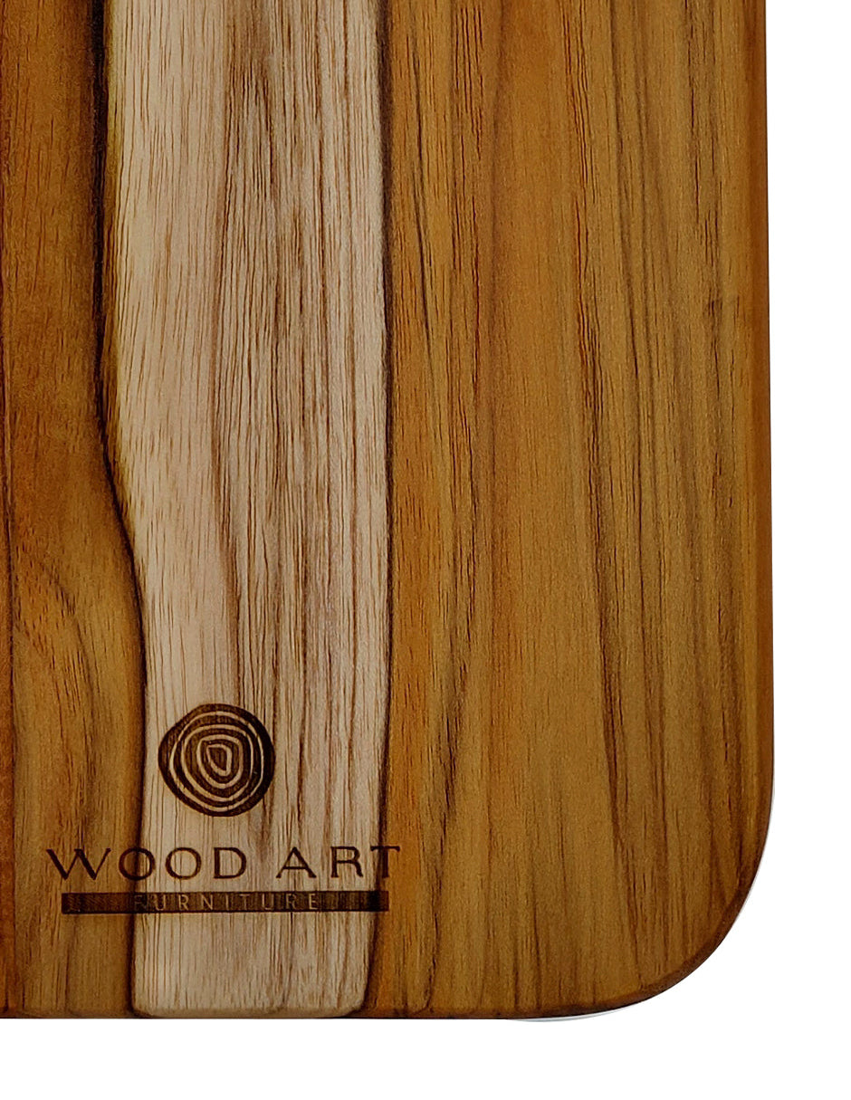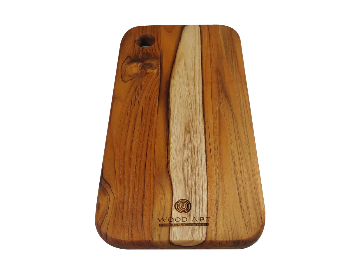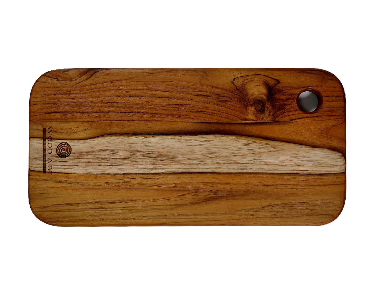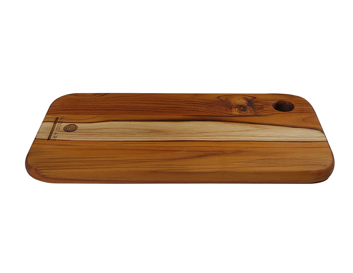 Esta elegante tabla está hecha a mano con madera de teka, conocida por su color dorado y vetas distintivas, aunado a sus aceites naturales que la hacen impermeable y resistente a hongos y bacterias, la convierten en la ideal aliada de tu cocina. Su diseño alargado es perfecto para preparar grandes cantidades de alimentos o usarla como superficie principal en la cocina.