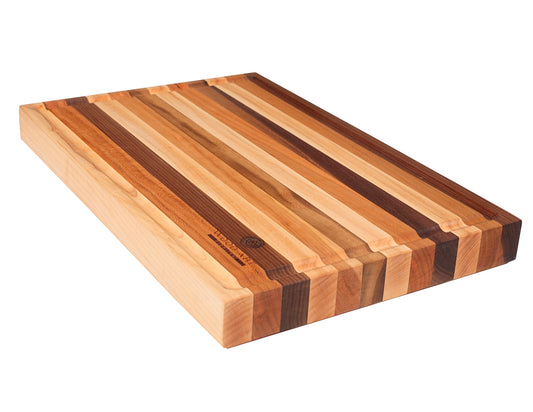 Tabla de grano de borde con canal para jugos – Nogal, Maple y Cerezo